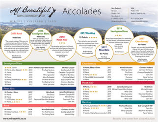 Mt. Beautiful Winery produces five different varietals of wine annually in addition to a Rosé wine blend. On occasion the winery also does a "barrel select" bottling of our Pinot Noir and Sauvignon Blanc varietals. When we release a new vintage of wine in a market (i.e. UK, US, New Zealand or Asia) we communicate with our trade partners in a variety of ways. In the US market typically our Sales Managers communicate with their Brand Managers in each market (or state) to let them know we've moved into a new vintage. Accompanying these communications are wine tasting notes, sell sheets (with accolades the wines have received) in addition to shelf talkers and updated sales presentations.